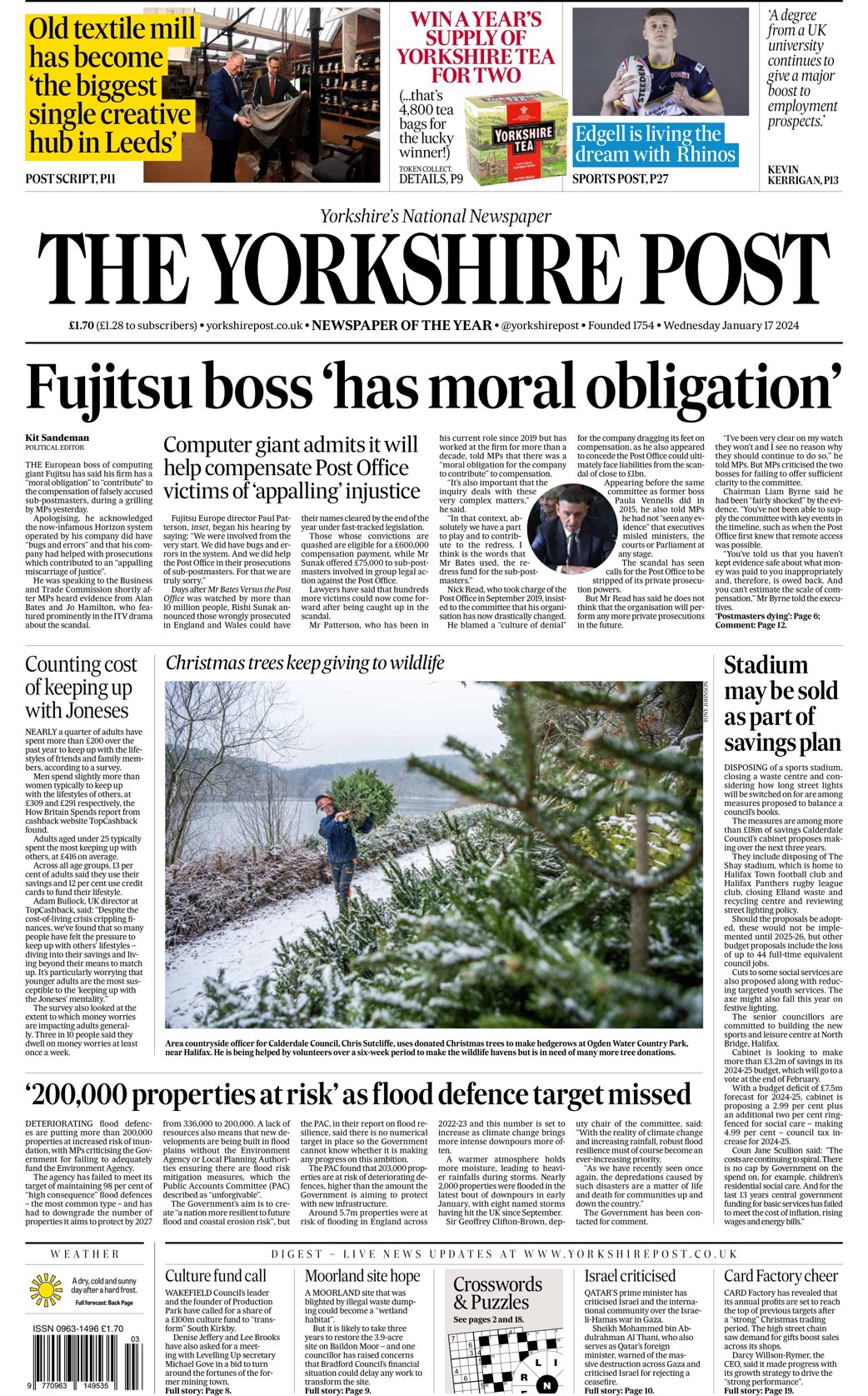 Source : www.facebook.comNeil Henderson on X: “YORKSHIRE POST: Fujitsu boss ‘has moral