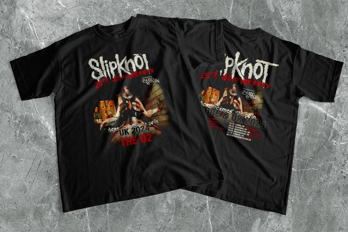 Source : www.amazon.comNew Slipknot TOUR 2024 Europe & UK Front Back T Shirt Nwt Licensed